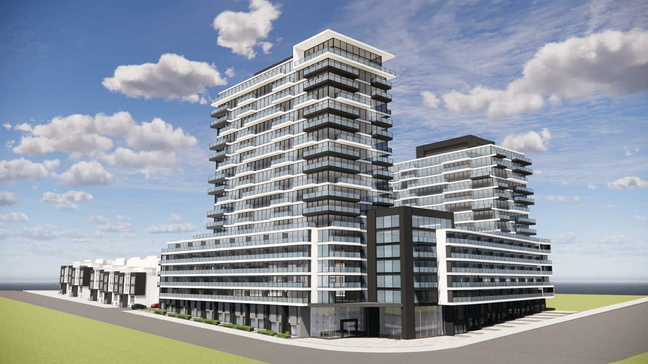 The 1730 Queen Street West Condos, a forthcoming project by Caliber Homes in Brampton, is currently in its pre-construction phase. Nestled at 1730 Queen Street West, within the serene Springbrook neighborhood, this development is set to comprise an 18-story and a 14-story condominium tower, along with six 3.5-story townhomes, collectively offering a total of 650 suites.