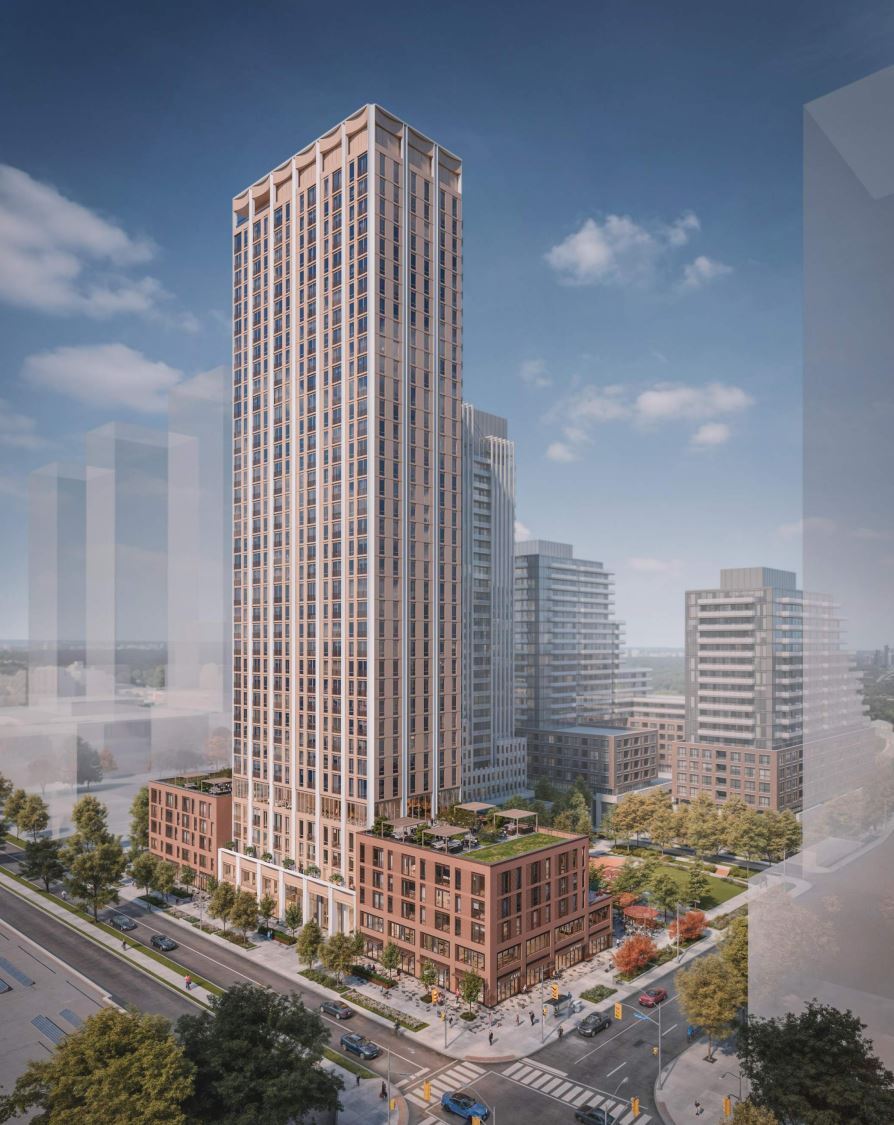 20 Brentcliffe Road Condos is a proposed 39-storey mixed-use condominium and retail development in Toronto’s Leaside neighborhood. Located at the northwest corner of Brentcliffe Road and Vanderhoof Avenue, this high-rise project is being developed by DiamondCorp on behalf of 939GP Inc. and designed by Superkül.