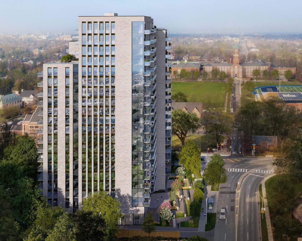 20-storey residential building at the southwest corner of Avenue Road and Lonsdale Avenue in Toronto's Forest Hill neighbourhood by the Preston Group and DBS Developments. The building contains 177 suites comprised of 44 rental replacement units and 133 non-rental replacement units, an increase of +50 dwelling units above the 2011 approval. Of the 50 additional units, 4 units will be located within the rental replacement component of the building, while 46 units will be located outside of the rental replacement component of the building.