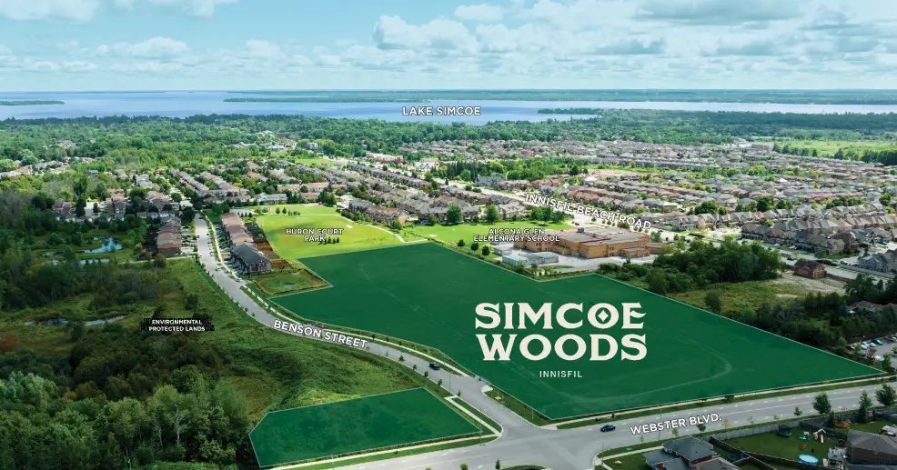 Simcoe Woods is a new premier collection of towns and single-detached homes coming soon to Alcona. Located at Innisfil Beach Road and Webster Boulevard just five minutes from the shores of Lake Simcoe, this new community is just moments away from the town’s selection of amenities, featuring beautiful green spaces, and easy access to the waterfront and Highway 400. Don’t miss your chance to be part of this wonderful new opportunity!