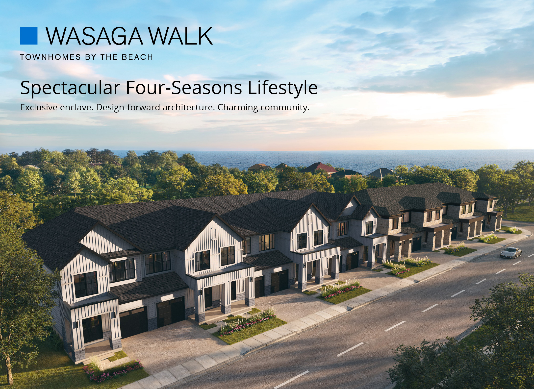 Discover Wasaga Walk, a community of well-crafted townhomes that offer exceptional value without compromising on style or comfort. Nestled minutes from the beach and surrounded by nature, Wasaga Walk strikes the perfect balance between peaceful surroundings and convenient access to Wasaga Beach’s vibrant downtown.